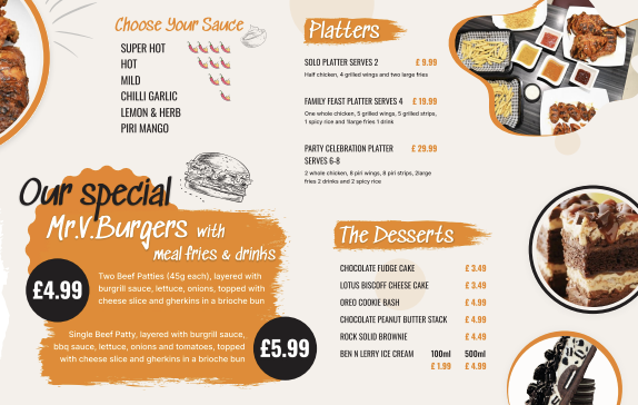 Welcome to MR.V GRILL, a culinary gem located at 41 High St, Hounslow. This restaurant delights with a menu that boasts diverse offerings, from savory platters to enticing veggie options. The Solo Platter serves two, while the Family Feast caters to four, bringing friends and family together to relish grilled delights.